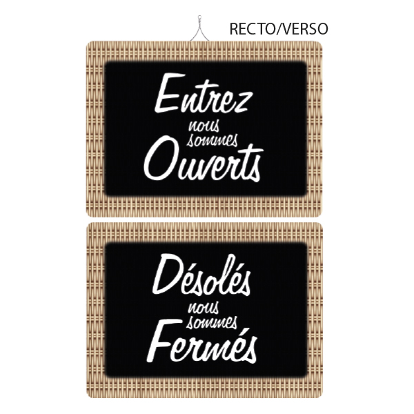 Un cartel de abierto/cerrado en ambos lados para informar a sus clientes de su disponibilidad